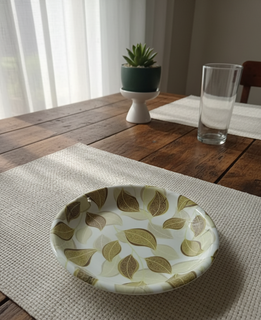 White Plate With Green Leaf